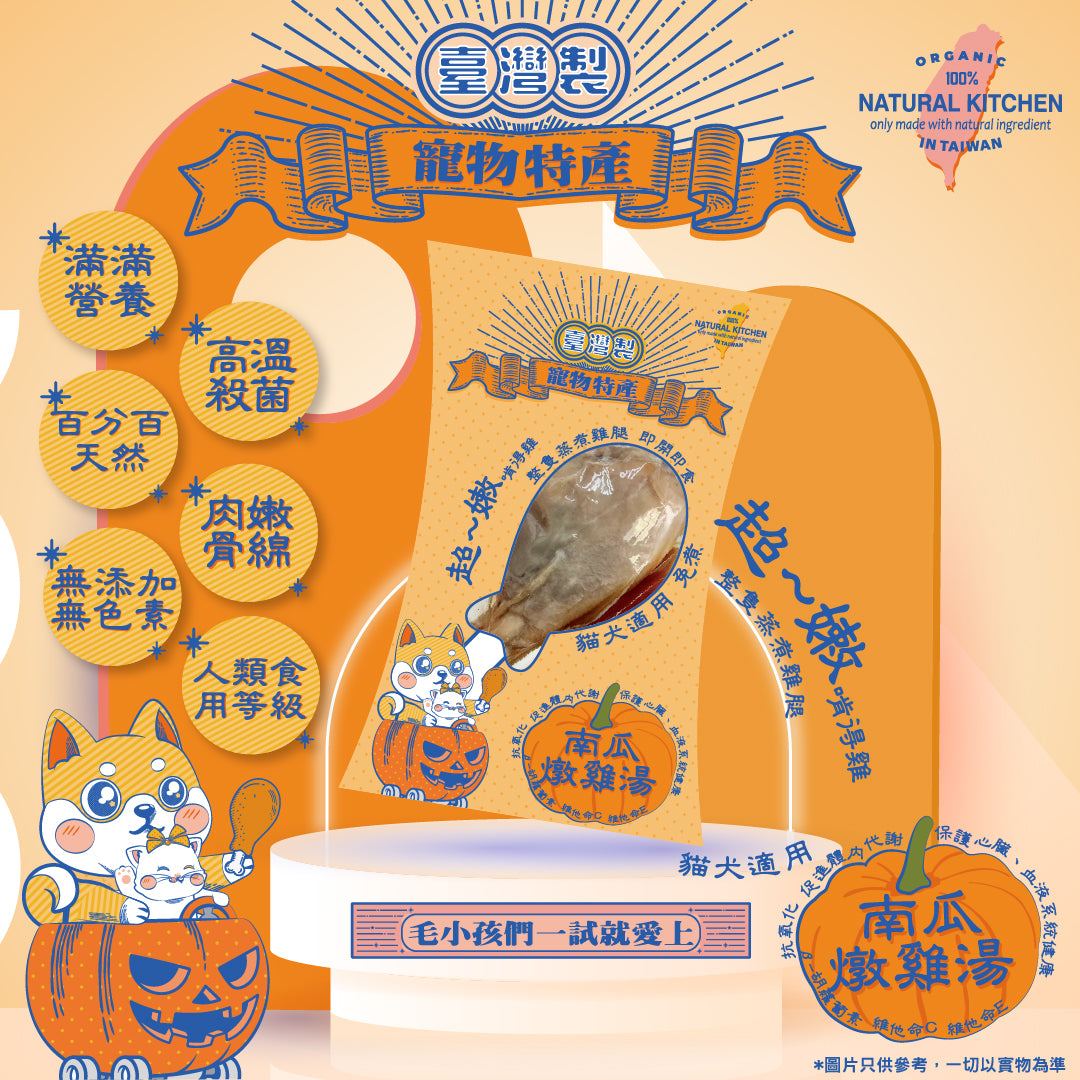 【NATURAL KITCHEN】臺灣製造的高壓蒸煮綿綿雞髀 南瓜燉雞湯味,為您的毛小孩帶來健康與美味的享受!