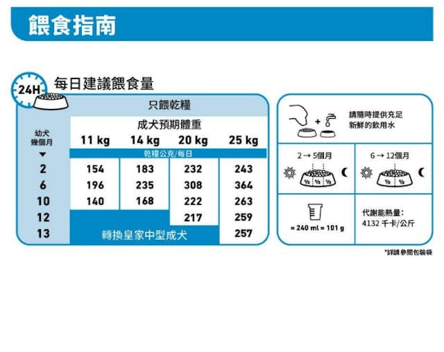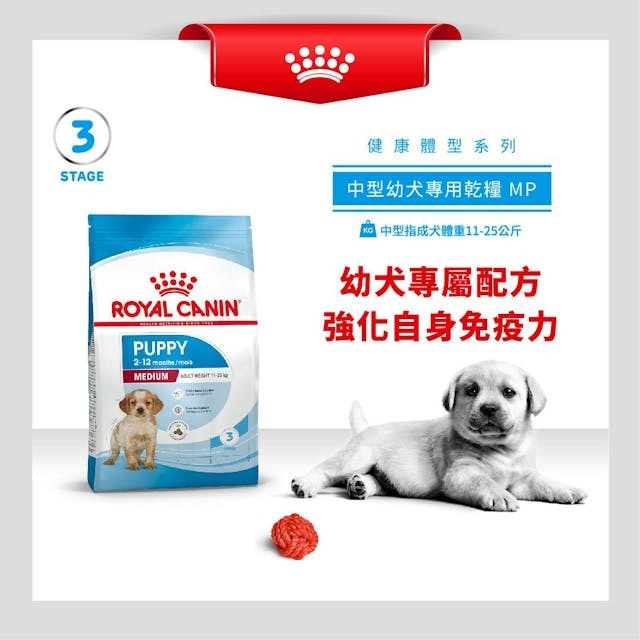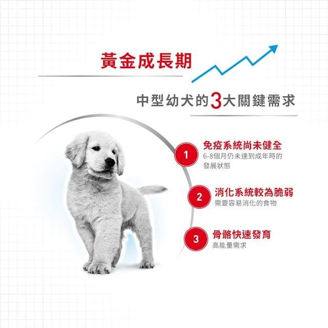 Satisfies the high energy needs of medium breed puppies over their growth period, up to 12 months old.