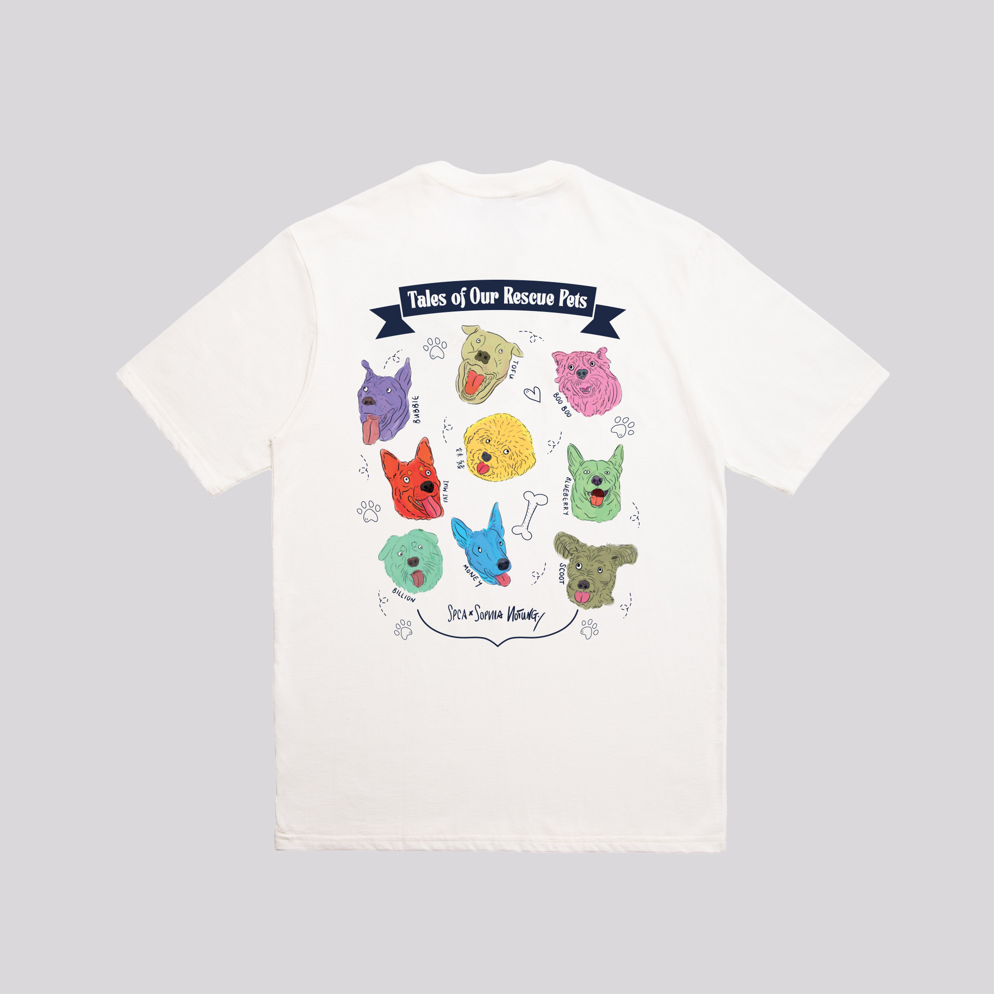 以溫暖的創意向愛心致敬,這《毛孩的故事》系列由藝術家Sophia Hutong特別為SPCA繪畫,展現領養動物的獨特故事與個性。白色T恤正面印有簡約標誌,背面則是手繪風格的插圖,描繪多隻可愛的救援寵物,每一筆都是對牠們生命歷程的致敬。