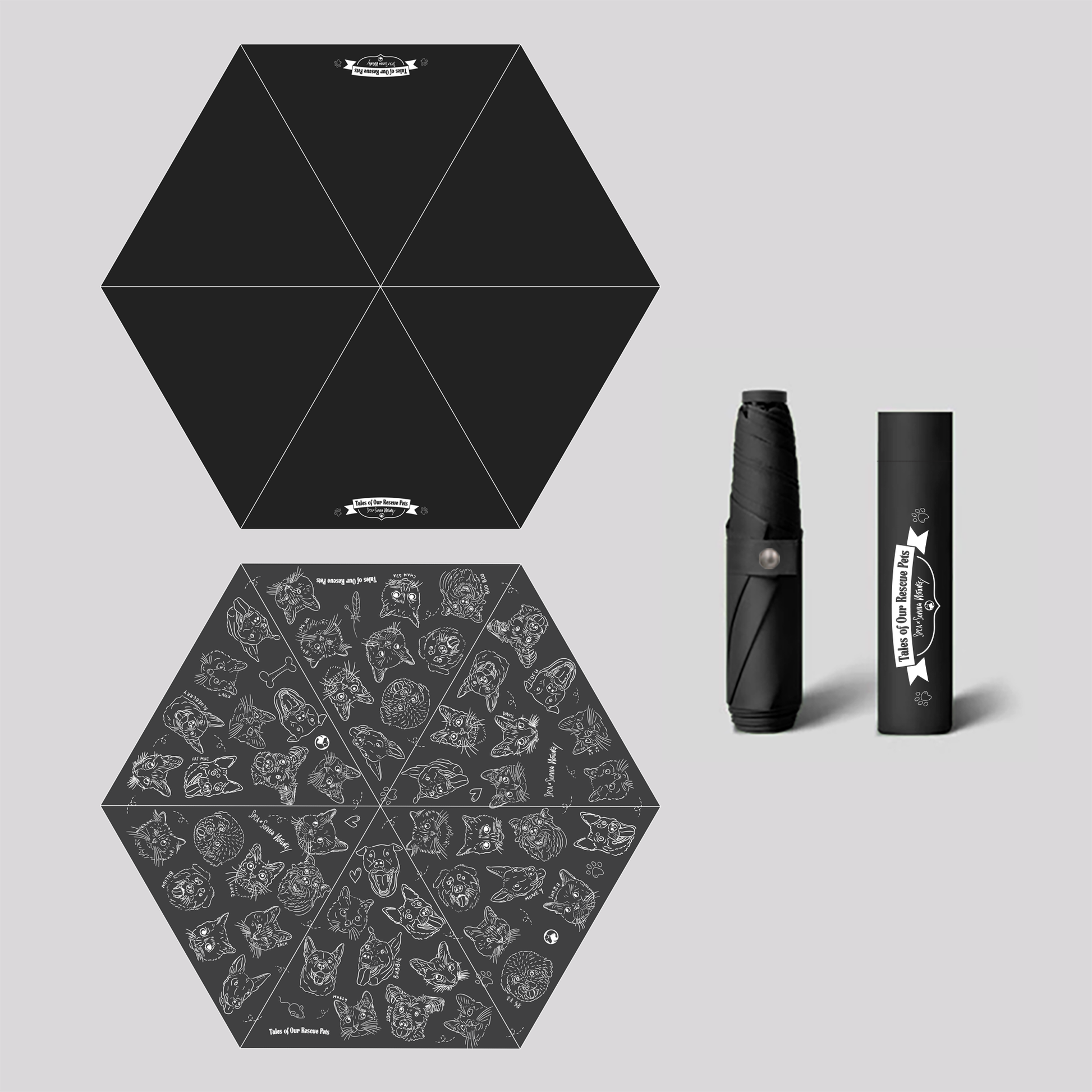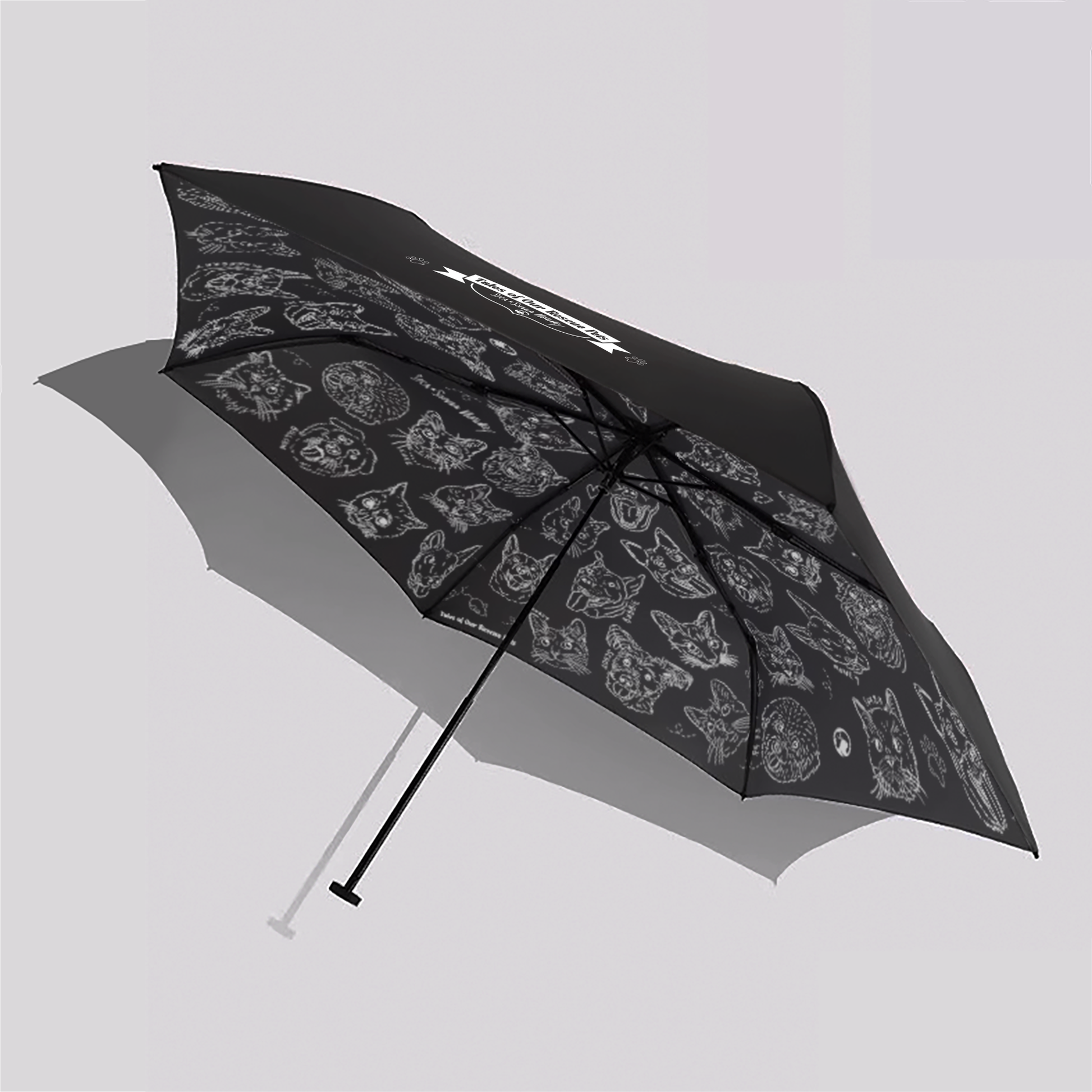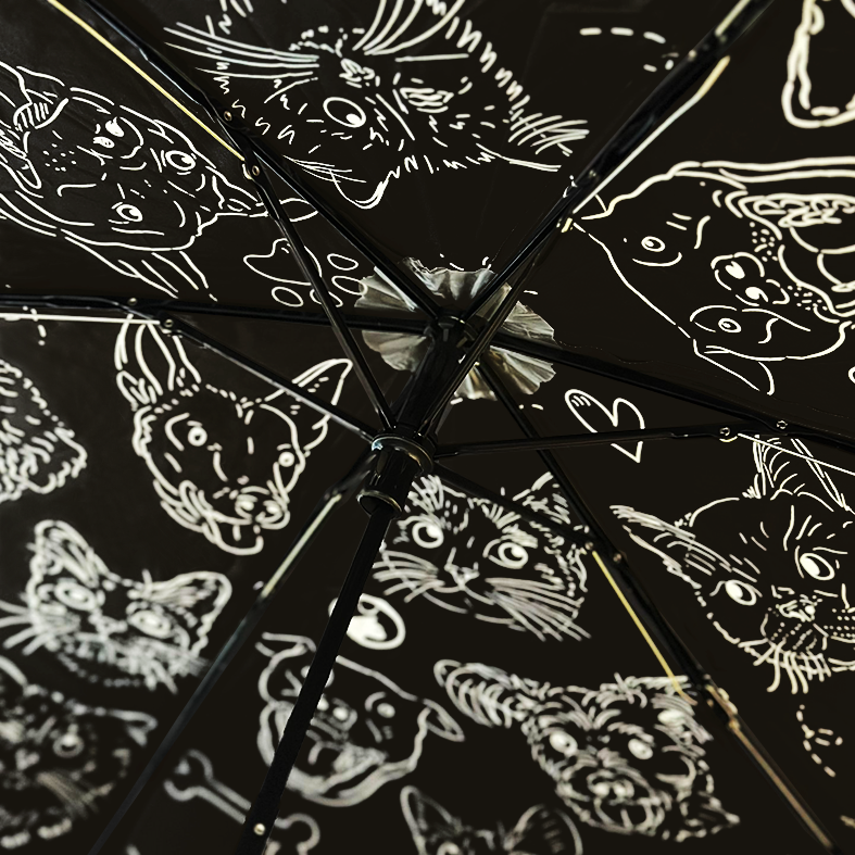 - T傘面採用 毛孩的故事 標誌設計,內層則以 毛孩的故事 頭像塗鴉印花點綴,展現 低調而精緻的品味 。