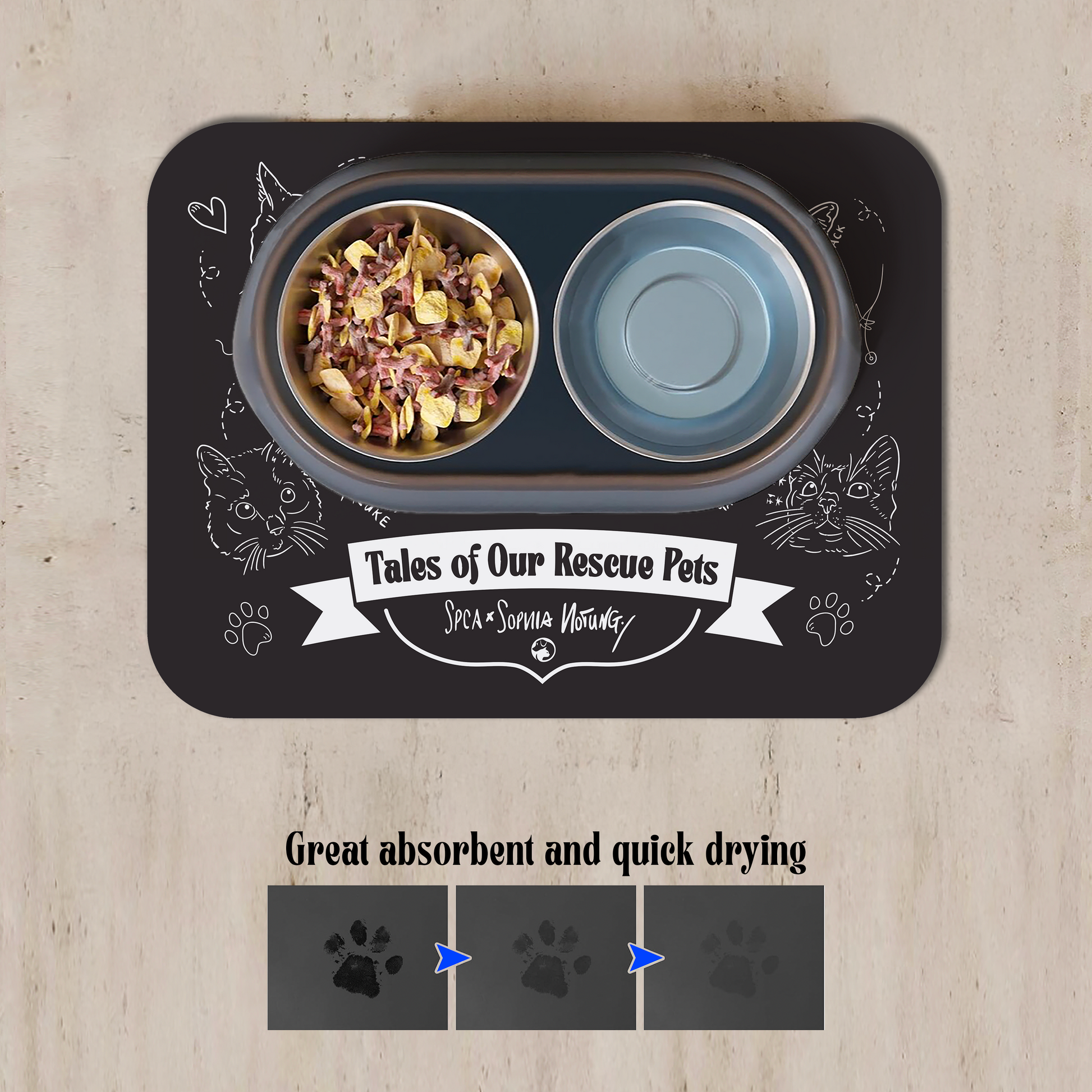 - 為你介紹毛孩的故事寵物餐墊。 餐墊以功能性為設計考量,具有高品質的矽藻泥,讓你的地板在寵物用餐時保持淨潔。